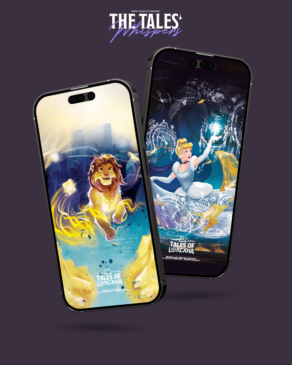 Due nuovi personaggi del decimo set di Disney Lorcana, Simba e Cenerentola, ti aspettano pronti per essere utilizzati come Wallpaper del tuo telefono. Cosa aspetti?